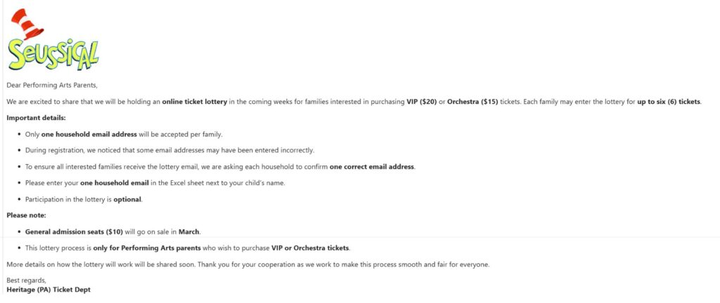 Below you will find the Seussical Jr Donation Letter, Ads form, and shout-out forms for this season’s performing arts. Our committee is soliciting ads for our printed program. These ads can be student performer ads from family and friends, as well as ads from local businesses. These will be full color and printed with high-quality paper and bound in a nice keepsake program.