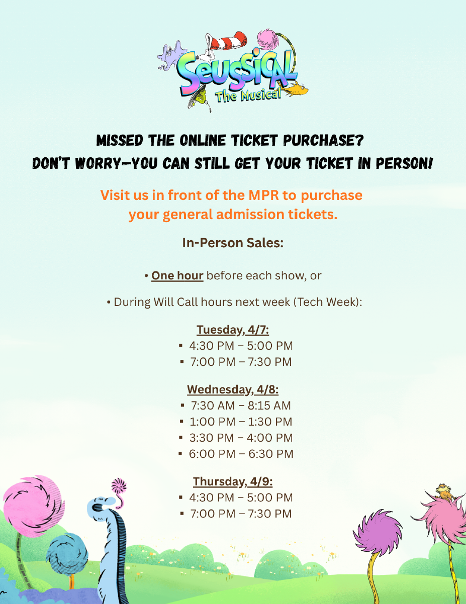VERY IMPORTANT UPCOMING DATES: Each cast has 2 shows and 2 tech days: